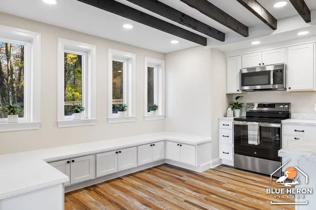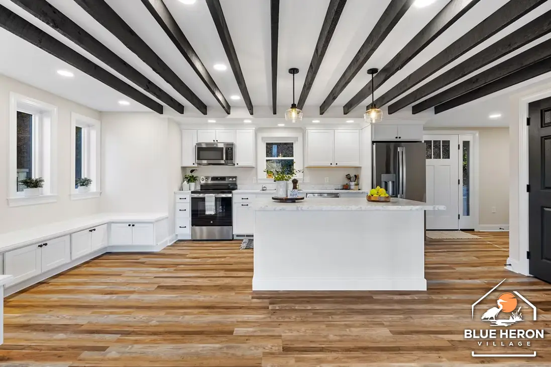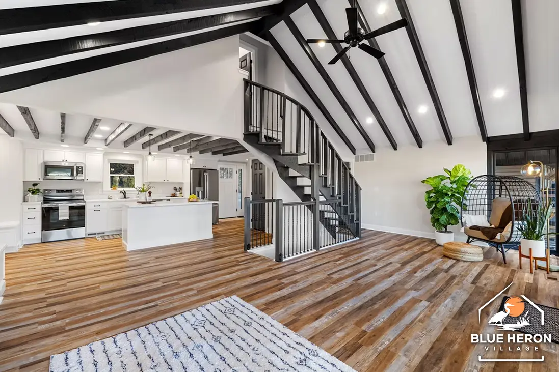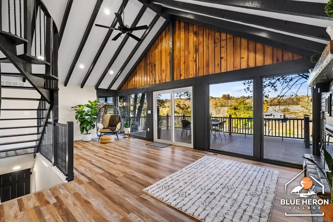 A spacious four-bedroom, three-bath lakefront home with cathedral ceilings, open living spaces, and large decks overlooking the water. Perfect for anyone seeking comfort, nature, and community living at Blue Heron Village.
